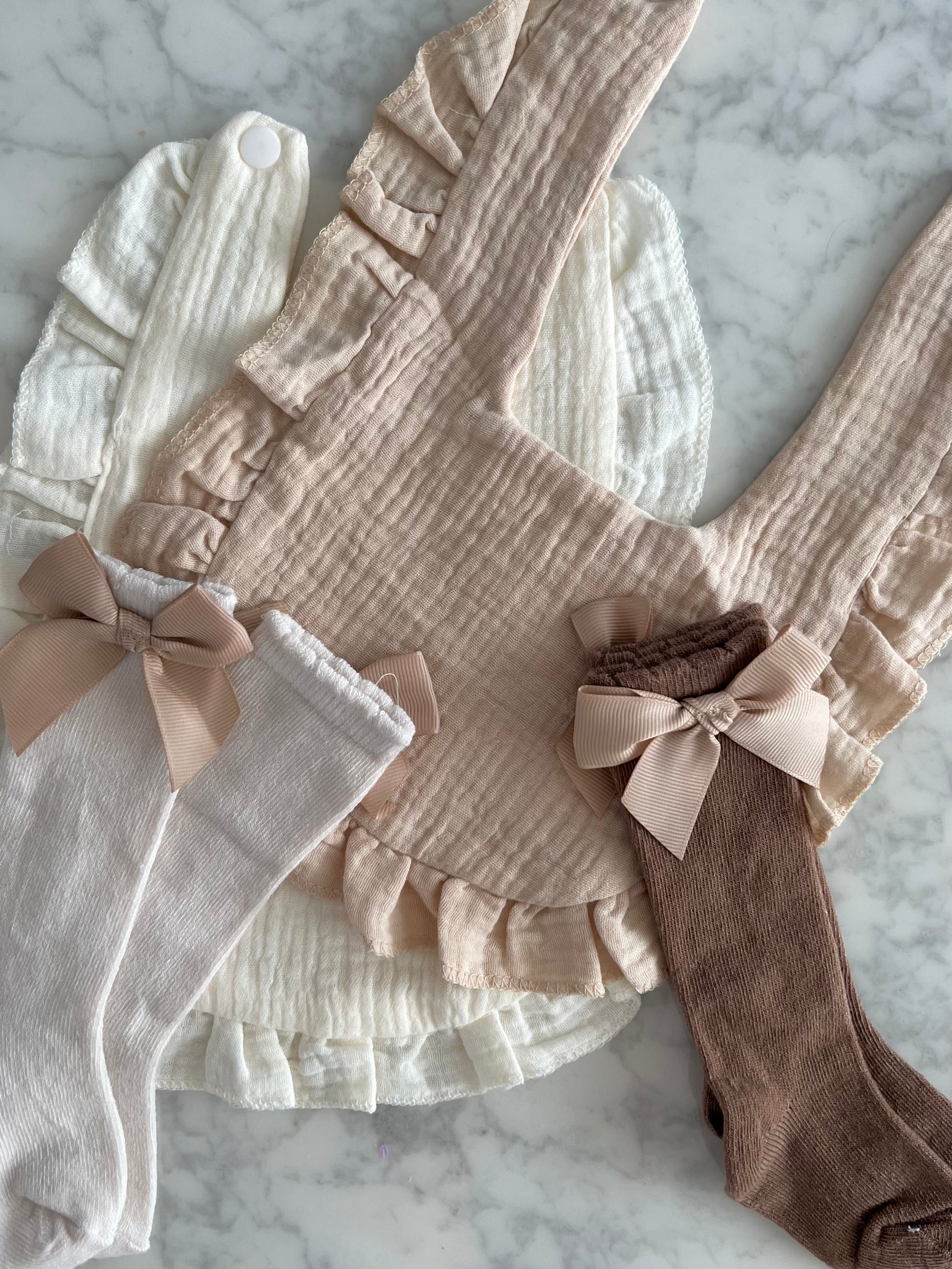 Soft Elegance - Musselin Lätzchen und Strümpfe mit Schleife