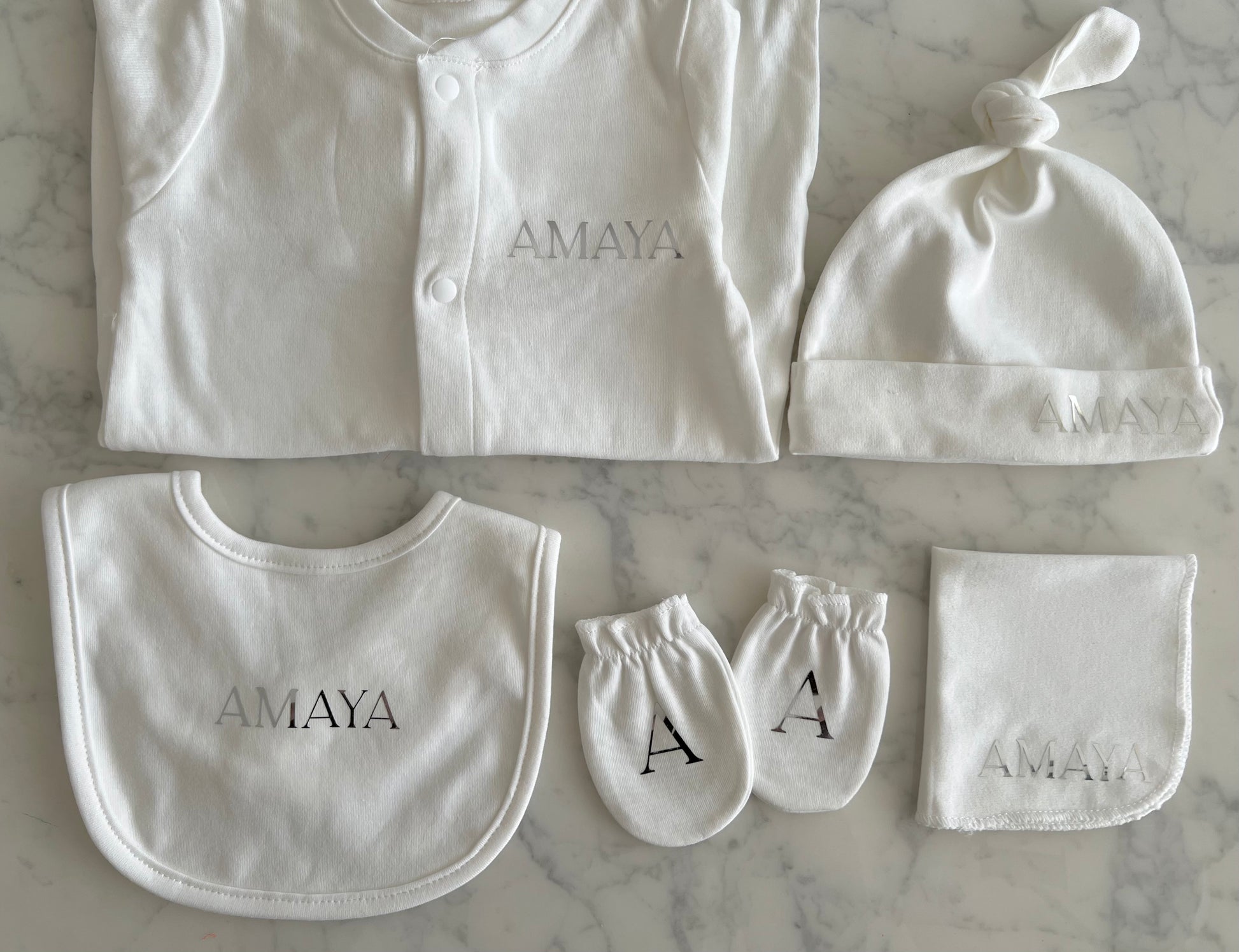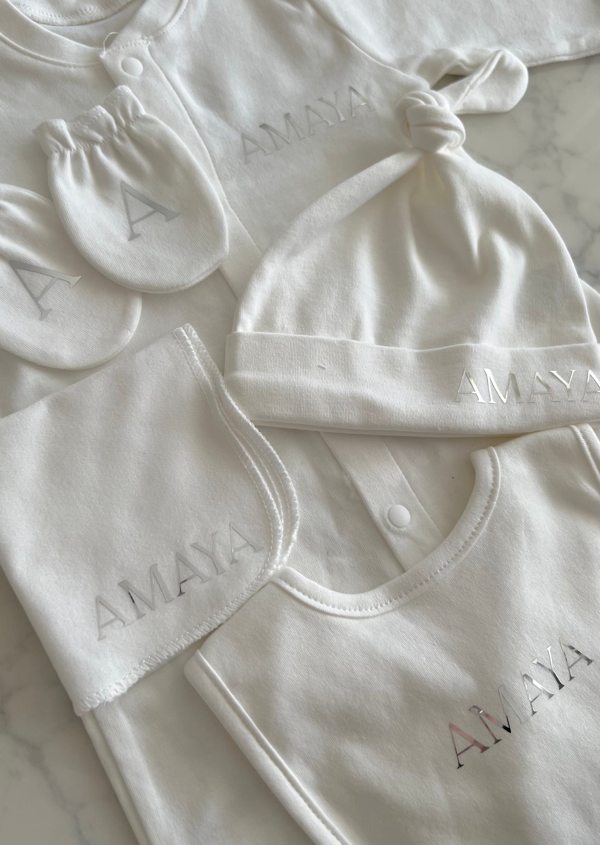 Sanft, schlicht und unendlich liebevoll - unser personalisiertes Baby Newborn Set ist das perfekt Geschenk für die ersten Lebenstage deines Babys