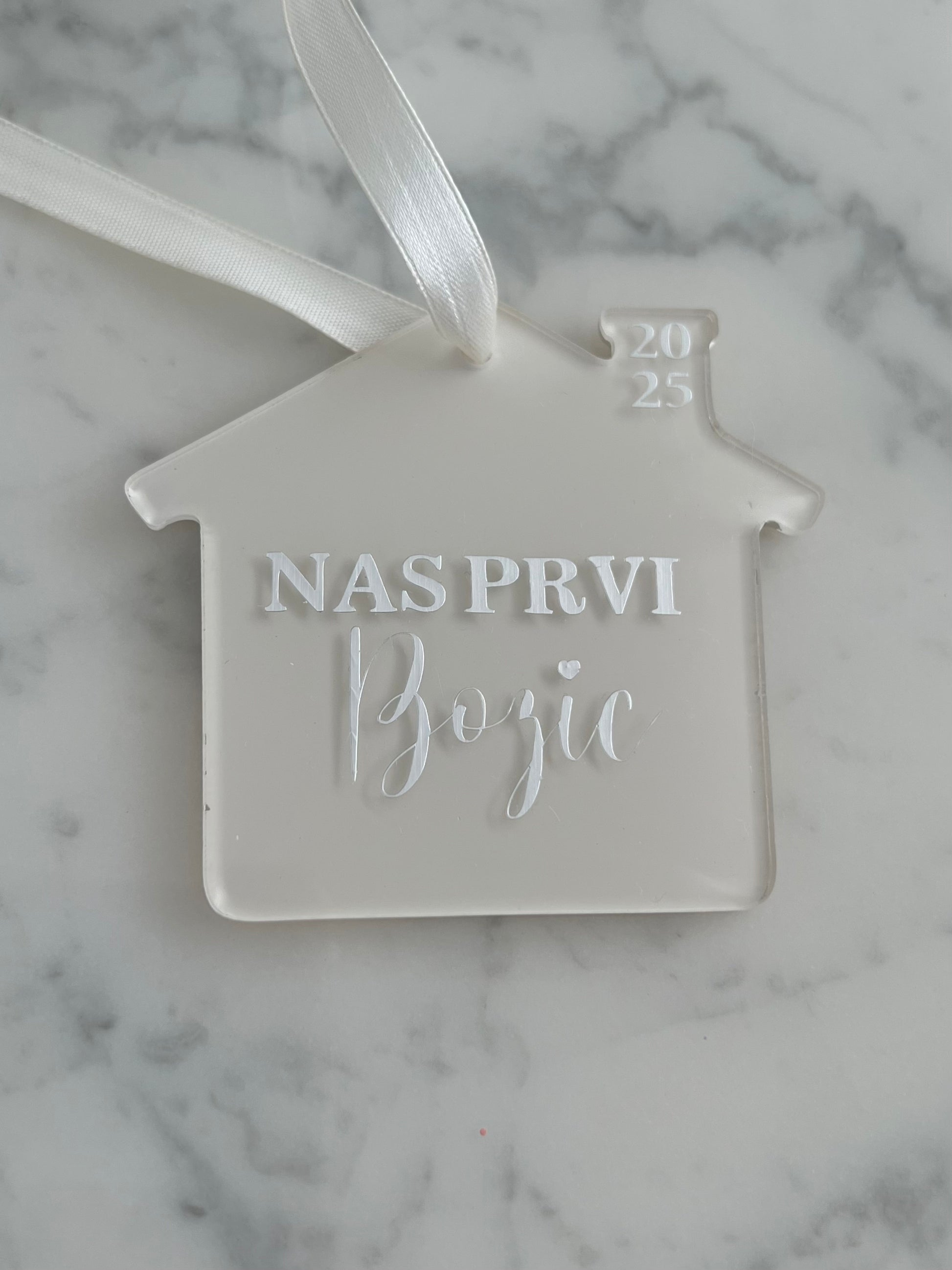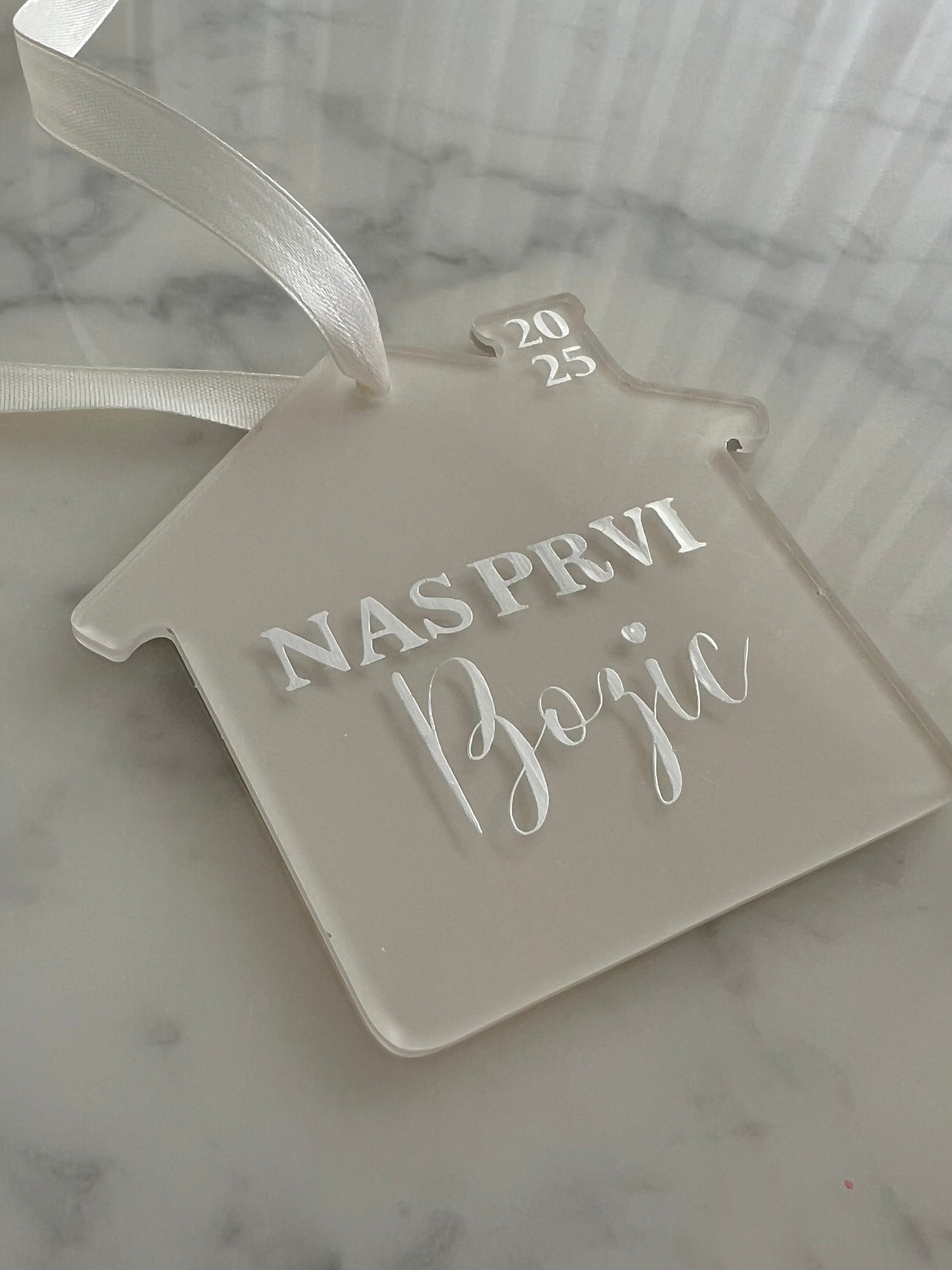 Dieses liebevoll gestaltete Acry-Ornament in Hausform mit der Aufschrift "Our First Christmas 2025" ist das perfekte Erinnerungsstück für Paare, Familien oder frisch Verlobte.